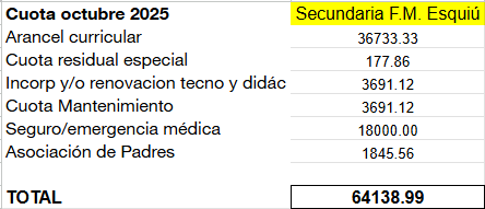 Primer año: 14/08 al 19/09 de 2025 para alumnos de otras escuelas (NO SAN BLAS).